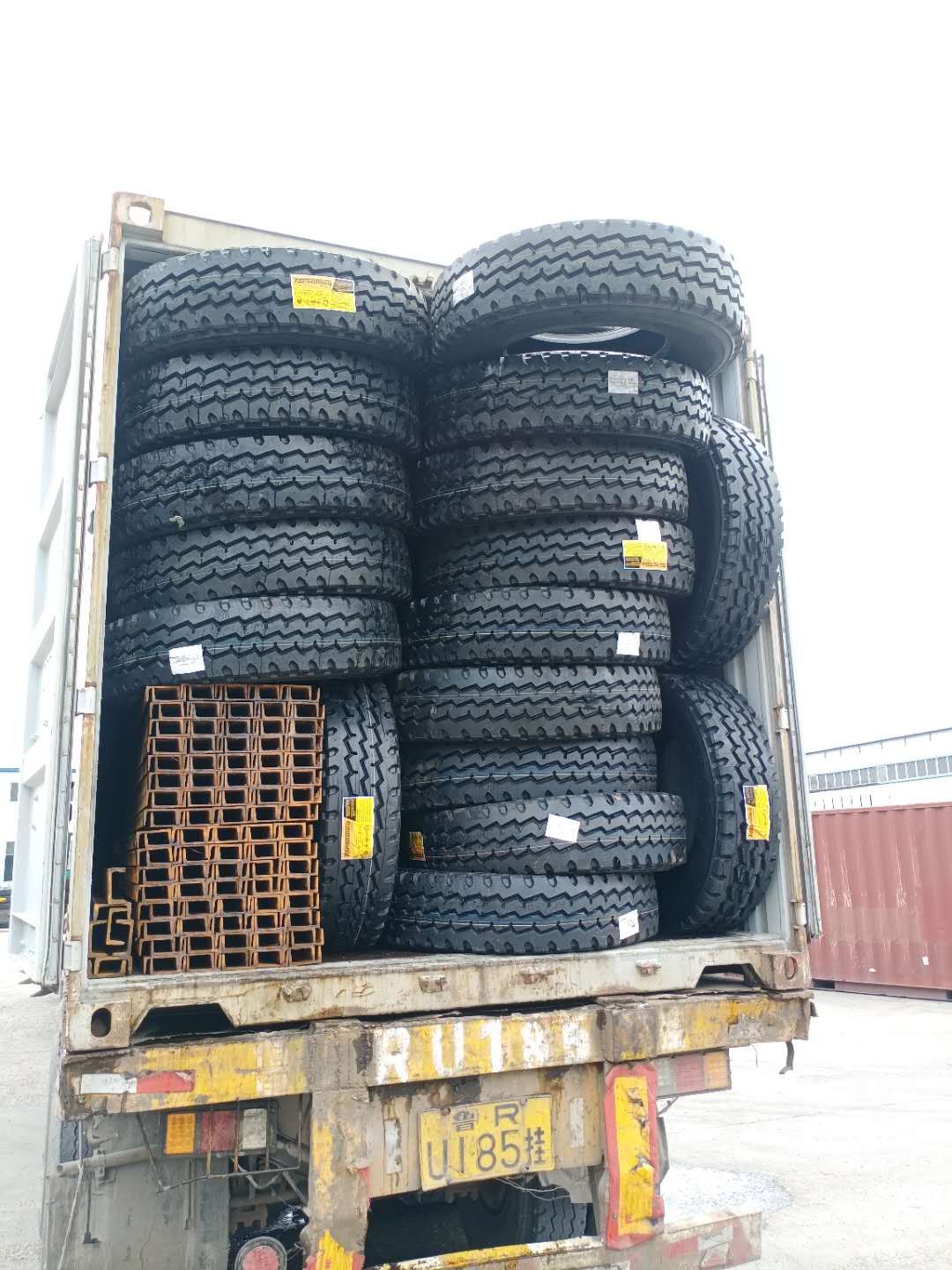 Quantity :480pcs TRUCK tyres / 5x20GP AND 100TON STEEL PLATE and Channel steel