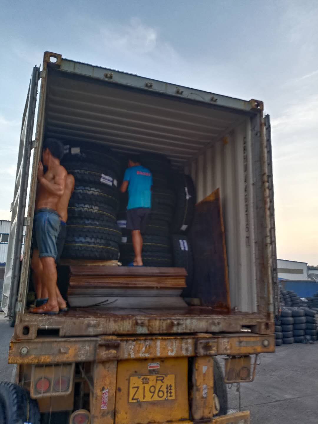 REMARK: As the customer request, we arranged loading TRUCK tyres WITH Steel plate and channel steel to use the space and the limited Weight!