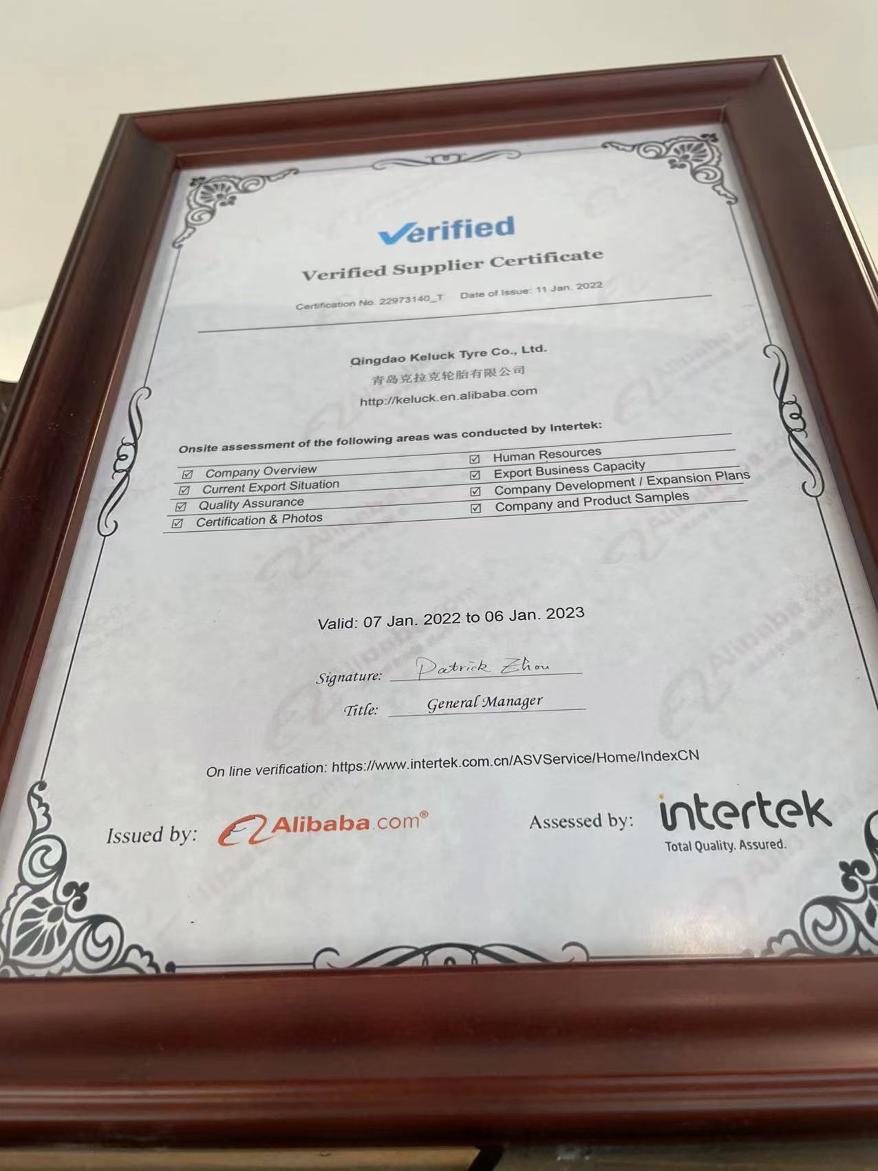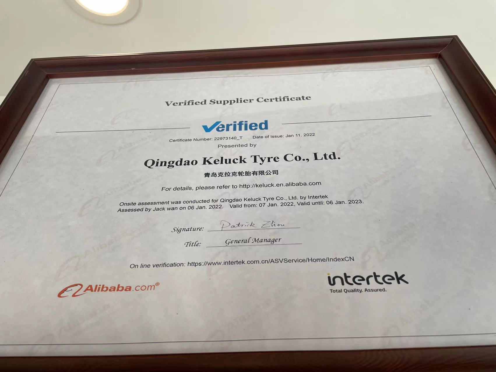 Congratulations to Keluck Company for becoming a senior gold member of Alibaba. Through nearly a month of hard work, Keluck Company passed the comprehensive and strict test and inspection of intertek, and successfully obtained the Alibaba Premium gold member. The company was Verified by intertek as a reliable tire Supplier, from now on,Keluck tyre will take this opportunity to provide better products and better service to global customers!